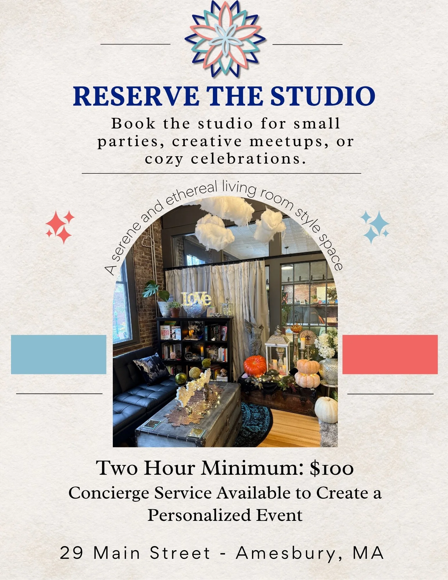 I opened this studio with the desire to collaborate and showcase others’ gifts. If you wish to explore your heart, open your mind, be a little brave and a lot curious - I have a space for you. You’re always welcome here. Express yourself. Love yourself. Make room for others in your world. It’s in creation that all things are healed.